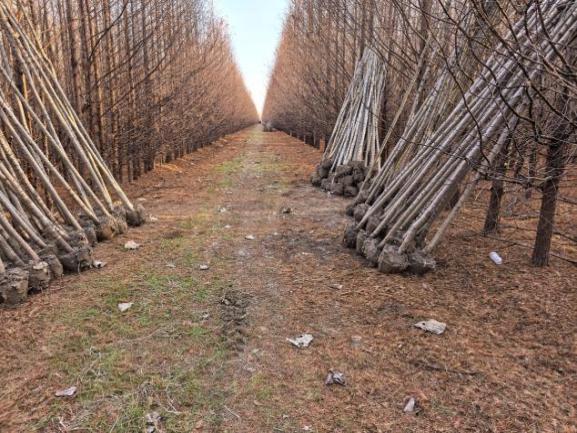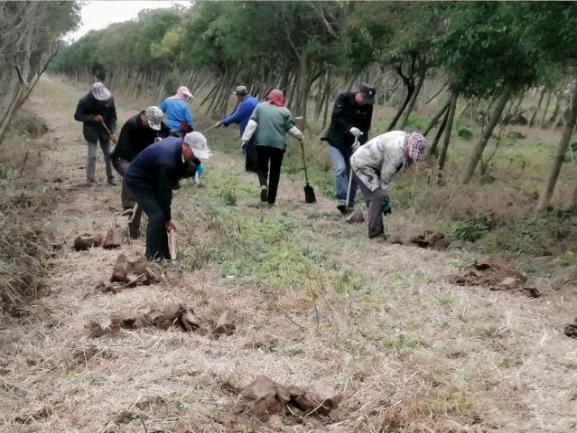 植树现场,一派热火朝天的劳动景象。大家分工协作、默契配合,有的挥锹铲土,有的扶苗定植,有的提水浇灌,每个环节都认真细致、有条不紊。经过三个多小时的辛勤劳动,300余株白榆和水杉苗木在此落地生根。