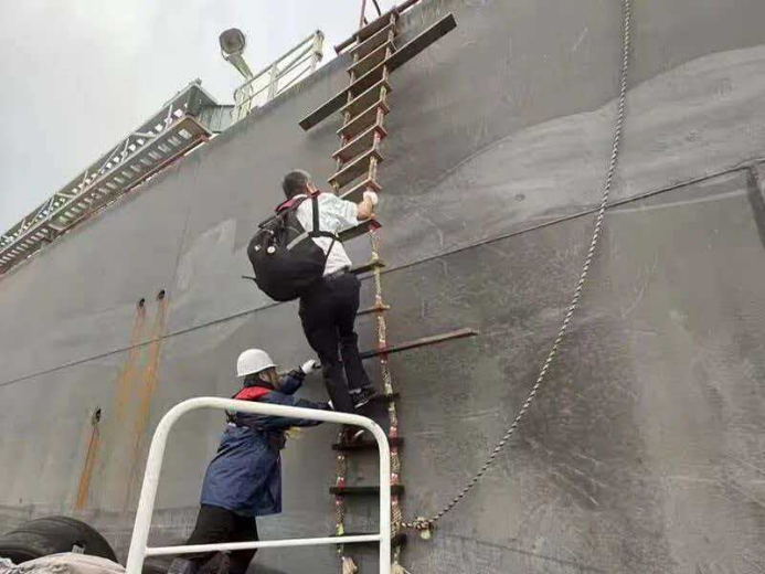 在处置“联盟8”轮船体外漂险情时,引航员就曾面临登轮的极端困难。当时正值大潮汛,东北风达6级,涌浪高达2米,剧烈摇晃的船体与拖轮间落差巨大,引航员若贸然攀爬软梯,随时可能被夹在两船之间或坠入海中。最终,他们果断放弃登轮,在码头前沿通过“岸基遥控指挥”化解危机——这恰恰从侧面印证了常规登离船环节潜藏的致命风险。