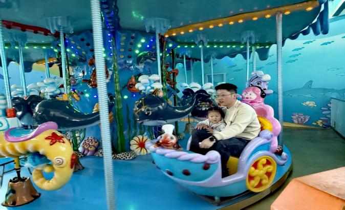 在海洋儿童乐园里,孩子们彻底放飞了天性。海盗船上,有小朋友兴奋地喊道:“爸爸,我比你高啦!”,小手一边紧紧抓着把手,一边咯咯地笑着。旋转木马、小火车、过山车、碰碰车、积木房……家长们或在一旁微笑守候,或参与其中,亲子间的默契与温情,在这一方天地里悄然生长。