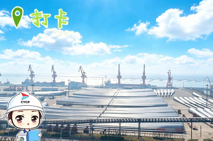 转身就是堆场“地标”,巨大的风电叶片整齐排列,它们是绿色能源的白色羽翼,静待远航;环顾四周是如绿色屏障般矗立着的防风抑尘网,致力将粉尘牢牢锁住,兑现对蓝天的承诺。