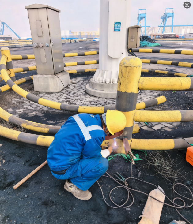 在烈焰与铁水交织的作业现场,他们是当之无愧的“钢铁工匠”。当门机钢构出现细微裂纹,当钢丝绳防跳槽装置亟待优化升级,手握焊枪的他们,以火为针、以铁为线,在千度高温中完成一次次精准的“设备修复手术”。每一道焊缝都承载着责任,每一次技术攻关都守护着安全,焊花飞溅间,他们筑牢了港口生产的“钢铁骨架”,让万吨巨轮的装卸作业万无一失,为港口的高效运转筑牢硬件根基。