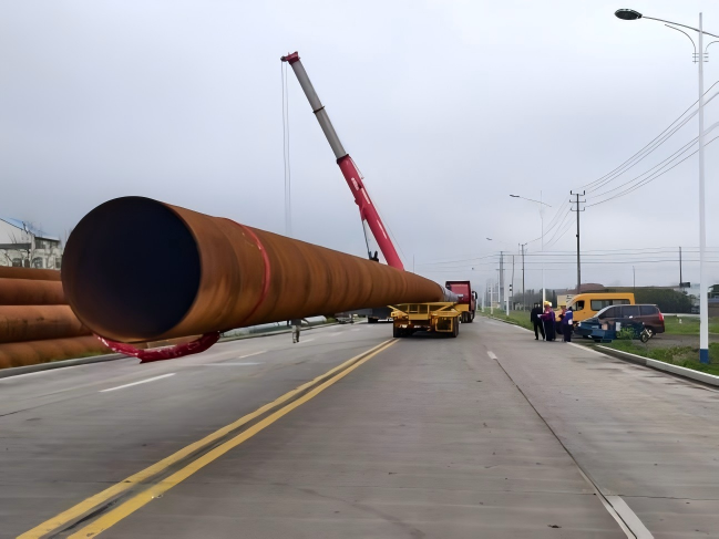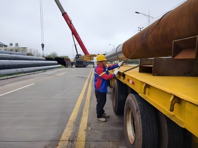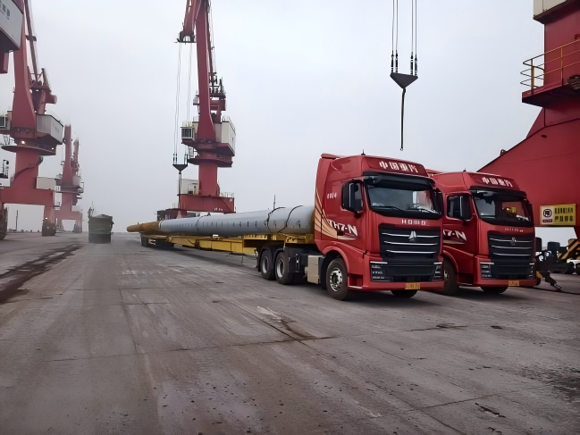 此次运输的管桩是基建项目的核心构件,兼具超长尺寸、超重吨位双重特点,共计109件,单根最短43米,重量超20吨,最长达76米,重量超40吨,给吊装、绑扎、运输带来极大挑战。作业前,物流公司提前对接客户需求,精准测算运输参数,积极协调码头、船舶等多方资源,全程严把安全关、效率关,确保管桩从出厂、运抵码头到装船离港的全流程无缝衔接,既保障了货物运输安全,又大幅缩短了运输周期,有效降低了企业物流支出。