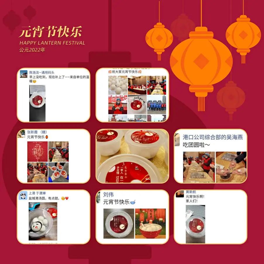 “今年的元宵节格外有意义,我真切感受到了盐城港大丰港区大家庭的温暖,作为大家庭的一份子,我将在集团党委的带领下,竭尽全力,拼搏奉献,把我们的港口建设得更好。”正在码头作业的邵志敏说。“没想到集团领导还给我们送汤圆,这个节虽然要在项目现场过,但是我的心里一样甜。”正在高标准农田项目施工一线的陈工高兴地说。
