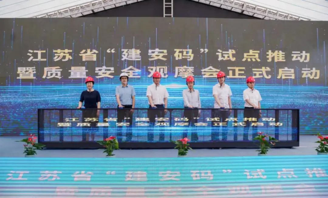 6月12日上午,江苏省“建安码”试点推动暨质量安全观摩会在盐城国际航运中心项目现场举行。省住建厅二级巡视员唐世海、质安处副处长夏亮,市住房和城乡建设局总工程师严东鸣,集团党委委员、副总经理徐振山等出席活动。