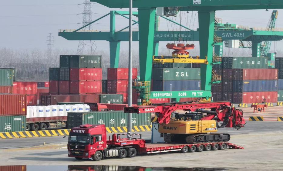 此次运输的核心货物为三一集团的一台大型旋转挖机,设备重达 90 吨、体积达 243 立方米,不仅运输难度大、技术标准高,且传统运输模式下装卸运输成本居高不下。设备从广东东莞启运,经公路干线精准运抵亭湖港区后,港区迅速启动专项服务机制,通过在港拆分、定制包装再装船的优化流程,成功为客户节约费用约2万美元,以全链条保障能力精准破解行业运输难题。