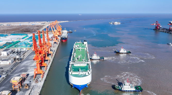 有序驶入“格罗冠军”号外轮