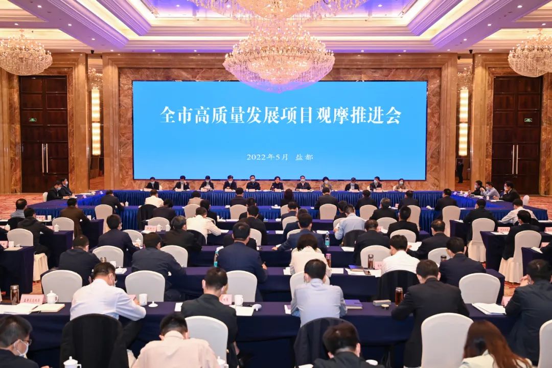5月10日至11日,我市在盐都区召开全市高质量发展项目观摩推进会。市委书记徐缨主持会议并讲话,强调要坚持以习近平新时代中国特色社会主义思想为指导,深入贯彻落实习近平总书记在中央政治局常委会会议上的重要讲话精神,按照省委常委会会议部署,坚持稳字当头、稳中求进,坚定信心、保持定力,紧扣高质量发展要求,把“疫情要防住、经济要稳住、发展要安全”的责任和措施落到实处,确保完成全年各项目标任务,勇当沿海地区高质量发展排头兵,在大战大考中奋力夺取疫情防控和经济社会发展双胜利。市委副书记、市长周斌,市委常委、市人大常委会主任王荣,市政协主席陈红红,市委副书记羊维达等出席。