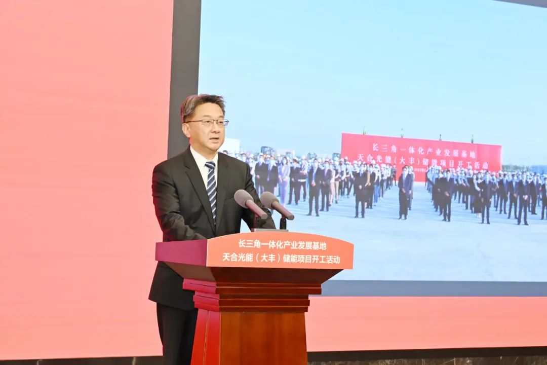 长三角一体化发展是习近平总书记亲自谋划、亲自部署、亲自推动的重大国家战略。盐城作为长三角中心区城市,有发展空间,有生态禀赋,有产业基础,有后发优势,有绿色低碳发展条件,是投资兴业的一方热土。天合光能作为全球领先的光伏智慧能源整体解决方案提供商,看好盐城、信任盐城、深耕盐城,企业不断做大做强,与盐城结下了深厚情谊。此次天合储能系列项目在长三角一体化产业发展基地开工建设,标志着双方合作进入新的阶段。我们将进一步优化营商环境,把服务好企业作为自己的分内事,提供更加优质服务,与企业同频共振、互促并进,以企业发展“风光无限”推动盐城发展“行稳致远”,携手共创美好未来。