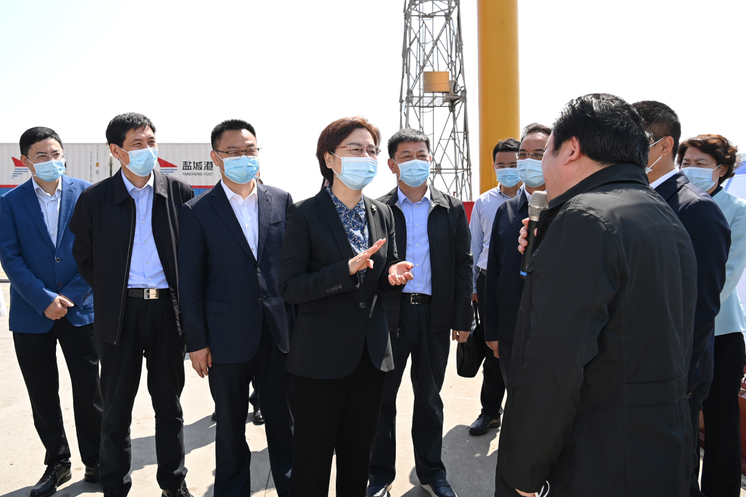 盐城港大丰港区集装箱码头一派繁忙,满载着集装箱的货轮马达轰鸣,准备扬帆起航。徐缨走上码头,认真听取盐城港控股集团运营情况汇报,强调要按照“疫情要防住、经济要稳住、发展要安全”重大要求,守好疫情防控关口,提升揽货能力,更好服务地方发展,推动集团发展再上新台阶。