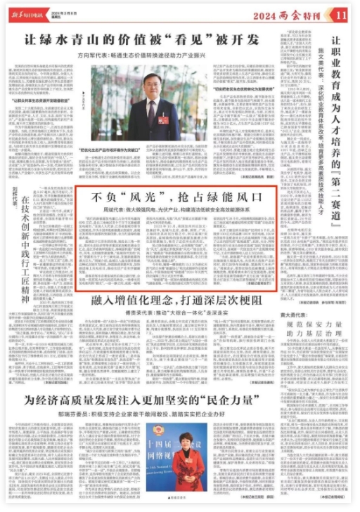 “我们的新能源发电量已占全市用电量的60%左右,是长三角地区首个千万千瓦新能源发电城市。”全国人大代表、江苏省盐城市委书记周斌说,作为全国首批新能源示范城市,盐城正发挥得天独厚的资源优势,全力打造绿色能源名城。