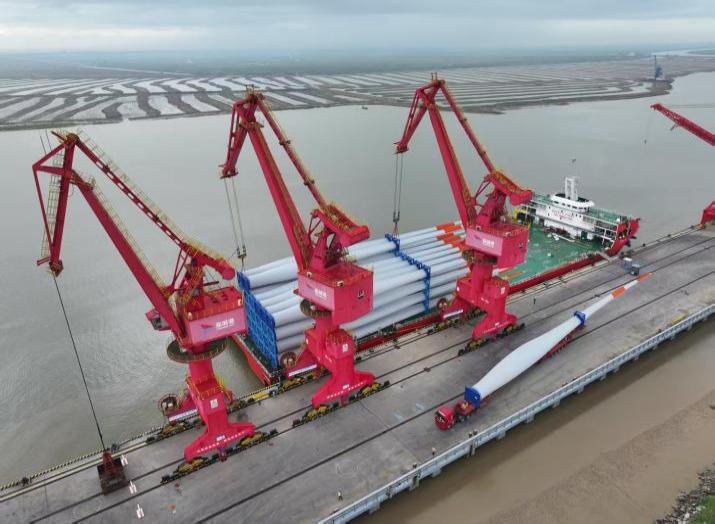 射阳港区作为“风电装备产业特色港”建设主阵地,立足产业优势,精准对接市场需求,圆满完成金风科技“江苏区域海上项目”234套、远景能源“印度项目”40套等重大风电设备出运任务,高效专业的服务让港区在风电装备物流领域的行业影响力显著提升;积极拓展货种版图,光伏管桩、固体沥青、钢结构等多个内外贸新货种实现顺利装卸,货种结构持续优化,多元化发展根基更加坚实;针对能源保供大局,港区全力服务射阳港电厂,扎实做好“迎峰度夏”“迎峰度冬”煤炭保供工作,为区域经济社会平稳运行提供坚实能源支撑为实现全年任务目标注入了澎湃动力。
